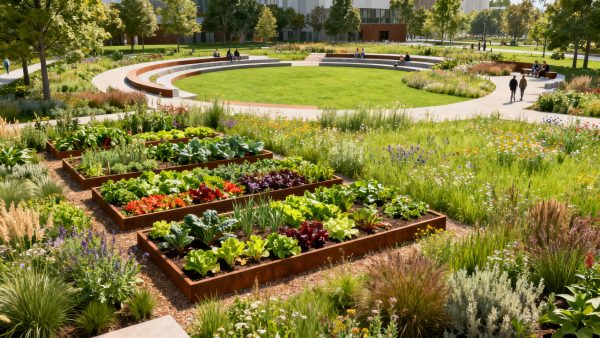 در طراحی فضاهای سبز شهری یا ساختمانهای دارای باغهای داخلی، هماهنگی رنگها با عناصر طبیعی نقش مهمی در افزایش حس ارتباط انسان با طبیعت (Biophilic Design) دارد. رنگهای الهامگرفته از طبیعت مانند سبز زیتونی، قهوهای خاکی، آبی آسمانی و کرم، حس آرامش، تازگی و تعادل را در کاربران ایجاد میکنند. این ترکیب رنگی نهتنها از نظر زیباییشناسی مطلوب است بلکه موجب کاهش اضطراب، افزایش تمرکز و رضایت روانی میشود؛ مفاهیمی که در طراحی پایدار اهمیت اساسی دارند.